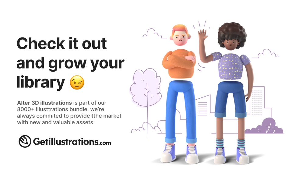 Welcome to the extraordinary realm of Alter 3D Illustrations, where creativity knows no bounds. This innovative pack combines the charm of 3D characters with the simplicity of 2D line background elements, resulting in a captivating collection of 306 illustration elements. It's a testament to the endless possibilities of merging dimensions to bring your projects to life.
