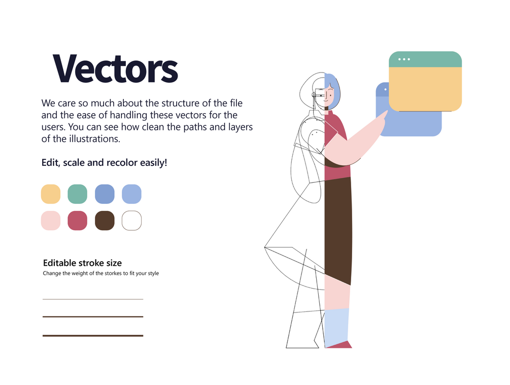 Upon purchasing an illustration, it's entirely yours! Enjoy lifetime ownership without subscriptions, view limitations, or the need for credits. Every purchase comes with a standard commercial license. Feel free to use these illustrations limitlessly across projects, be it templates, client tasks, or marketplace items.