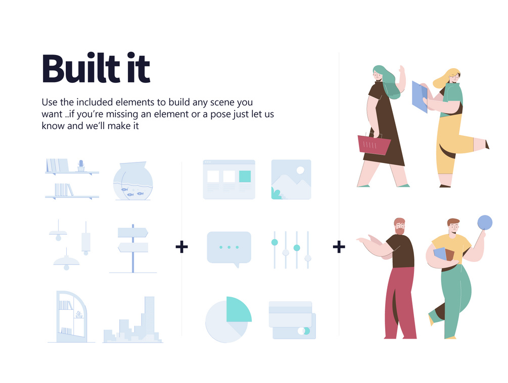 With clean shapes and a flat design style, these illustrations seamlessly blend with a variety of projects, whether you're designing websites, creating marketing materials, or crafting eye-catching content. The diverse characters, elements, and objects offer you a vast canvas to paint your imaginative tales. Whether you're working on a landing page, a presentation, or a mobile app, these illustrations provide the creative flexibility you need.