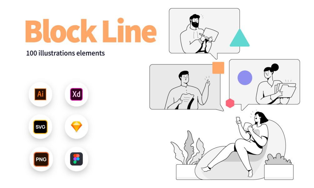 The heart of Block Line Illustrations lies in the elegant interplay between simple line art and solid blocks of shadow. These carefully crafted characters and elements enrich your design projects without diverting focus from the message you aim to convey. With clean outline strokes and the judicious use of geometric shapes, you'll discover a harmonious balance that elevates your layout without overwhelming it. Every element in this collection is presented in vector format, ensuring effortless editing and resizing to suit your unique requirements.