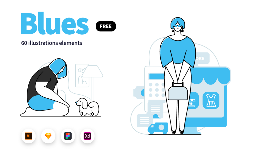 Discover the allure of Blues Illustrations, featuring 60 elegantly crafted dual-tone illustration elements that are entirely free. These illustrations offer a fresh canvas for your creative vision, making it easy to adapt them to your brand's unique color palette. Whether you're breathing life into website interfaces, infusing app designs with character, or enhancing printed materials, Blues Illustrations will elevate your projects with style and clarity.