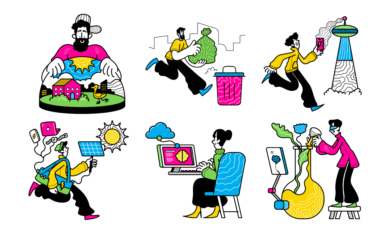 The CMYK Illustrations are meticulously crafted with custom Illustrator brushes, transforming each piece into a masterpiece of lines, strokes, and patterns. This diverse collection caters to a broad spectrum of themes, ranging from Artificial Intelligence to modern science and business, ensuring that you find the perfect visual element for every project. Whether you're crafting website templates, designing presentations, or engaging in various graphic design ventures, these illustrations effortlessly elevate your creative endeavors.