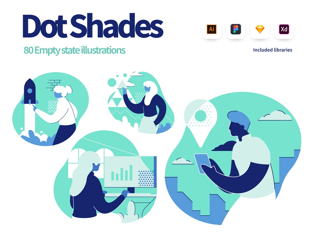 What sets Dot Shades Illustrations apart is not only their captivating style but also their adaptability. Available in Ai for personalized customization, SVG for versatile application, PNG for high-quality visuals, and compatibility with Figma and XD for seamless design collaboration, these illustrations offer creative versatility at its best. Elevate your design projects with charming dot accents and bold color highlights, especially for crafting expressive and meaningful empty-state scenes.