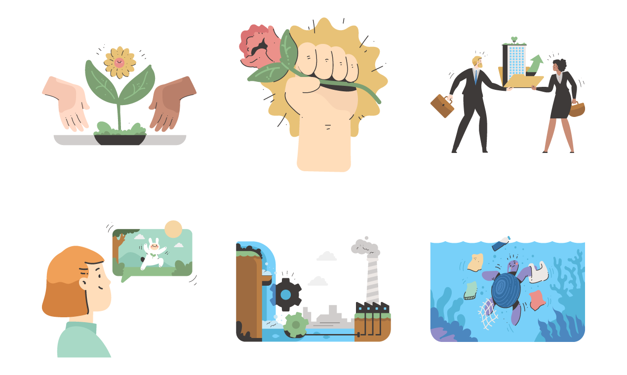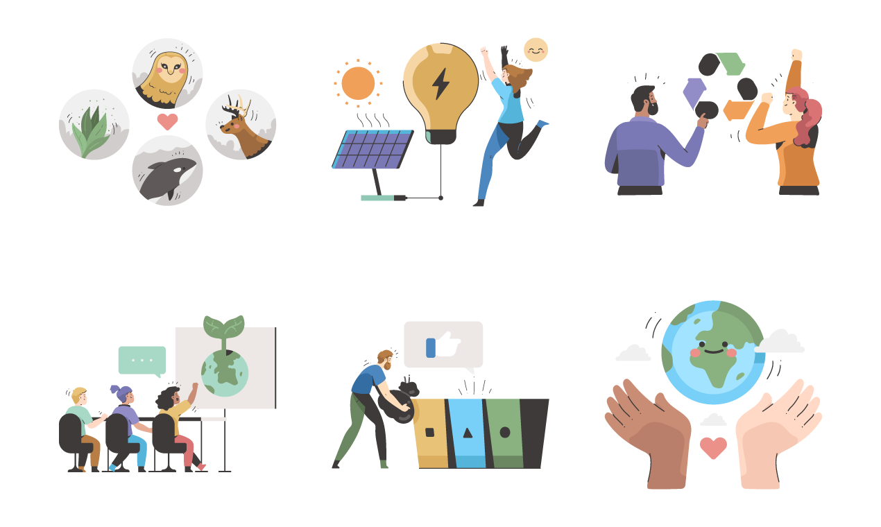As an advocate for ecological awareness, this collection is a perfect fit for individuals and organizations aiming to raise consciousness about environmental issues. The clean and cheerful nature of these illustrations provides a welcoming and accessible platform for starting essential conversations and driving positive change. With Ecology Illustrations, you have a valuable resource to visually convey the importance of preserving our planet and the steps we can take toward a more sustainable and harmonious future.
