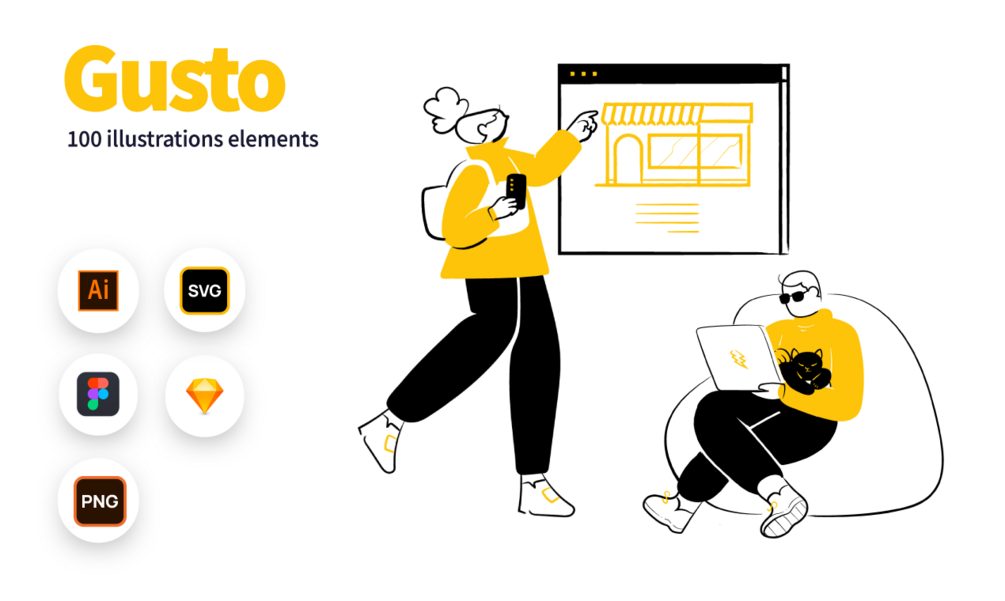Every vector in this pack is a blank canvas for your creativity. Whether it's adjusting colors to match your branding or tweaking line thickness to harmonize with your project's aesthetics, Gusto Illustrations are your ally. Say goodbye to design limitations and welcome the freedom to craft visuals that truly reflect your vision. Let Gusto Illustrations amplify the impact of your next project!