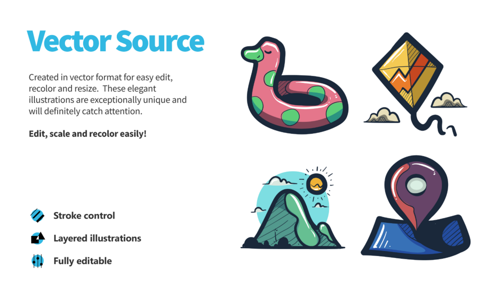 Yes indeed! Every illustration comes with original source files in diverse formats, empowering you to tweak colors, rearrange elements, or even craft entirely unique illustrations. Here's to boundless creativity!