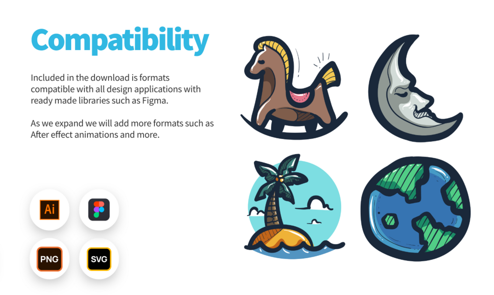 With our generous commercial license, these illustrations become an everlasting asset to your creative arsenal. Use them in any project, including templates for sale. It's time to rejuvenate your designs with the Illustrated Icons Pack—a fusion of cute, premium-quality doodles that will elevate and amplify your visual content. Unleash the power of creativity and make a lasting impression with these charming and versatile illustrations.