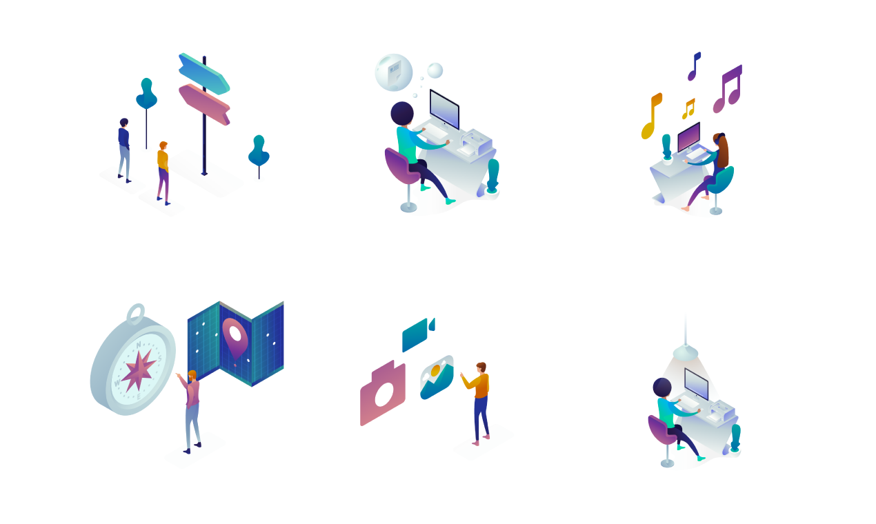 This pack is designed for mix-and-match mastery. With over 150 versatile elements at your disposal, you can effortlessly craft the perfect office scene. Dive into a treasure trove of meticulously detailed elements that range from accessories, computers, desks, and people in various positions. The use of gradient colors infuses a modern and clean aesthetic into the illustrations. If you're looking to make a significant impact with your designs, look no further than this pack of illustrations.