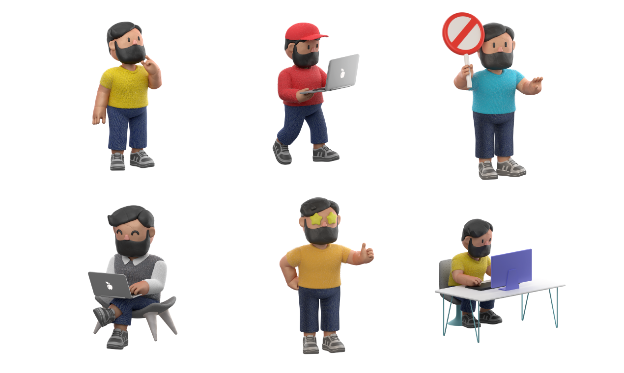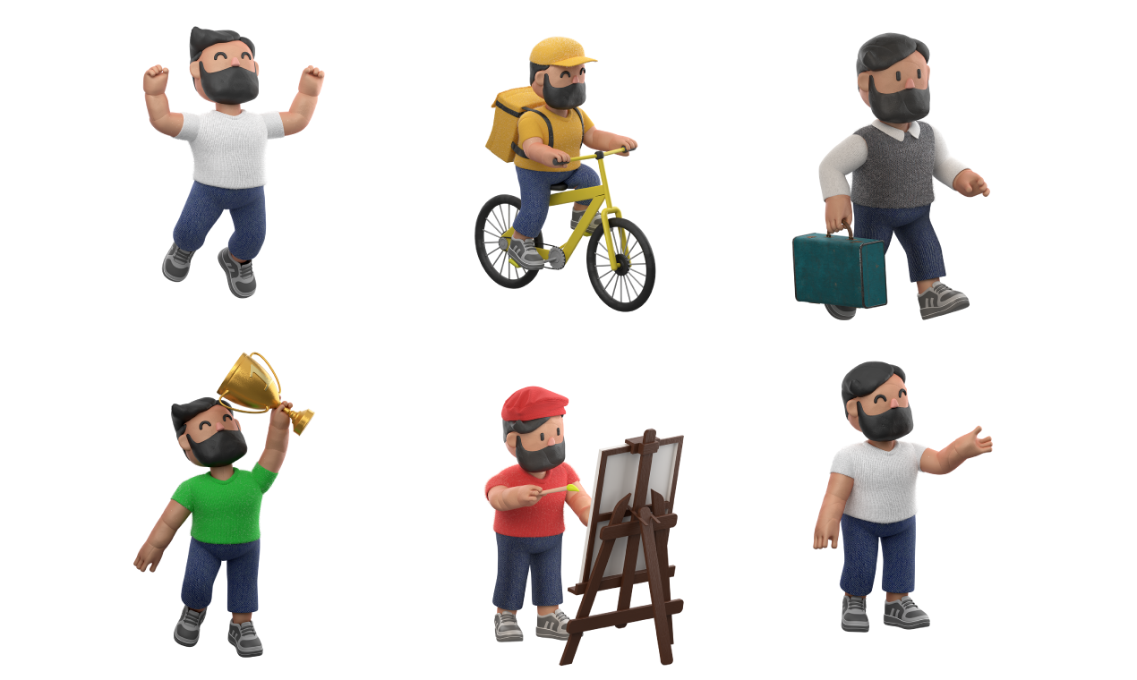 Embark on a creative journey with Milo 3D Illustrations, a delightful pack featuring 40 captivating elements, including 25 charming characters and 15 versatile objects. Crafted with precision in Blender 3D software, Milo comes to life with a distinctive clay texture, adding a unique touch to your designs.