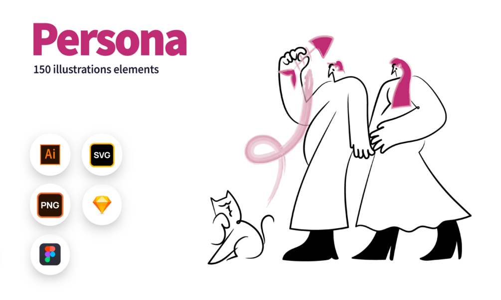Introducing Persona Illustrations, a dynamic collection of 150 vector elements that inject a breath of fresh air into the world of design. This brand new pack is a beacon of light surrealism, brimming with creative ideas and playful characters that promise to bring a touch of magic to your design projects. What truly sets Persona apart is its remarkable versatility, ensuring it seamlessly fits into any type of design project you're currently immersed in.