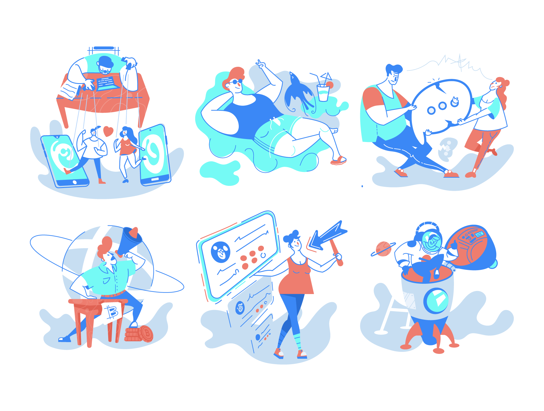 The Quirky Duotone Illustration Pack is your go-to source for breathing life into your designs with a hint of childlike wonder. Whether you're crafting websites, applications, or any creative project, these elements bring a dash of whimsy that sets your work apart. Their unparalleled style, characterized by delightful detail, offers you the freedom to fully customize and rearrange scenes. Thanks to their vector source format, you can effortlessly adjust colors and configurations to align with your creative vision.