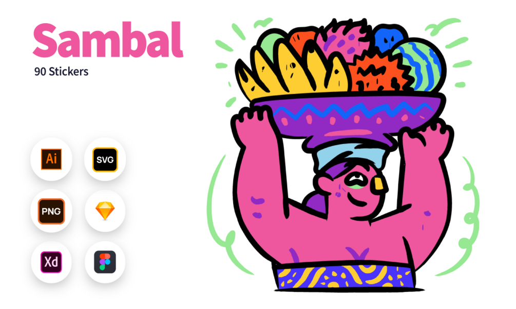 The name "Sambal" evokes the essence of delicious, spicy sauce, and that's precisely the flavor we aimed to infuse into this sticker pack. Just as a dash of Sambal can transform a dish, these stickers are designed to add a flavorful kick to your designs and conversations. Each sticker is lovingly hand-drawn in a charming cartoon style, featuring thick strokes and vibrant, pop-inspired colors that radiate energy. What's more, all these stickers are thoughtfully crafted in fully editable vector format, offering you the flexibility to customize them to your heart's content.