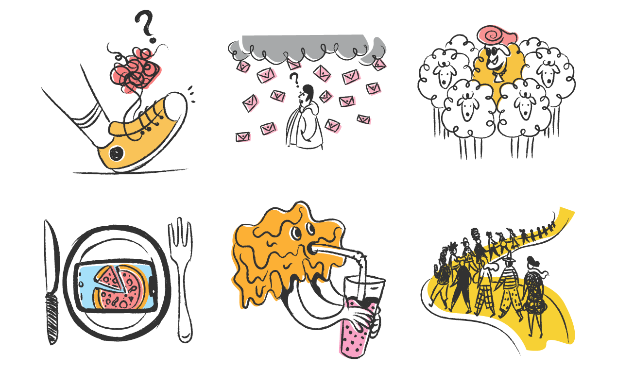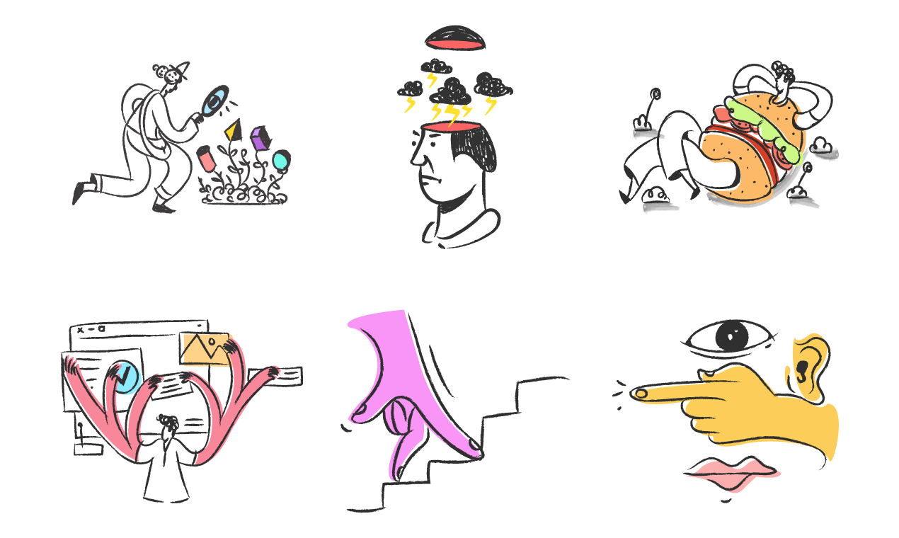Surrealism Illustrations are a testament to the art of creative craftsmanship. Each scene is a hand-drawn masterpiece brimming with eccentric humor and child-like charm. Soft colors and intricately outlined shapes create a visual experience that's gentle on the eyes, making these illustrations a delightful addition to any graphic design endeavor. From marketing materials to web design, these illustrations breathe life into your projects with their surreal allure.