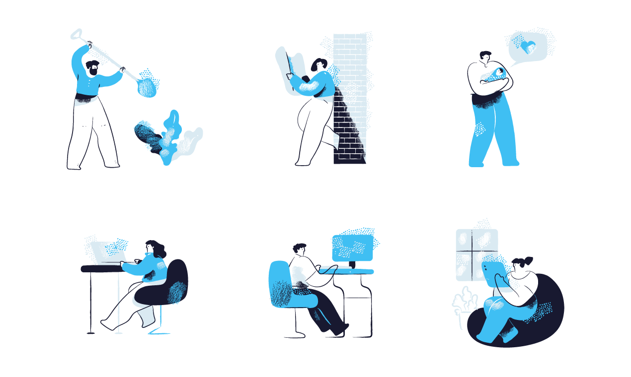 Zima Blue Illustrations captivate with their unassuming yet expressive simplicity. These illustrations blend effortlessly into various design endeavors, making them a versatile addition to your creative toolkit. Their utility extends to serving as engaging empty state illustrations on websites, setting the stage for user interactions. The collection boasts an array of delightful characters performing a myriad of actions in diverse scenes, allowing you to spin your narrative as you see fit. As all our illustrations are fully editable, you're free to customize each element, adapting them to your unique vision.